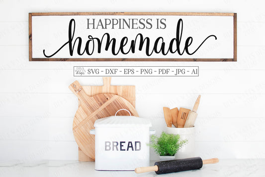 SVG | Happiness Is Homemade | Kitchen Dining Room Farmhouse Sign | Simple Bouncy Script with Tails | Vinyl Stencil HTV | Rustic Vintage DXF