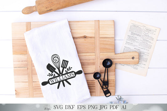 Kitchen Utensils Monogram / Last Name SVG | Farmhouse Kitchen Sign SVG | Tea Towel SVG | dxf and more! | Printable