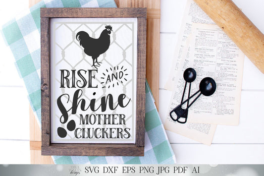 Rise and Shine Mother Cluckers SVG | Funny Farmhouse Kitchen SVG | Rustic Sign SVG | dxf and more! | Printable