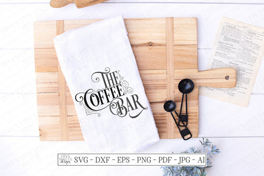 SVG | The Coffee Bar | Cutting File | Kitchen Farmhouse Rustic Bar Sign | Vinyl Stencil HTV | Tea Towel | Brewing Station | dxf eps jpg pdf