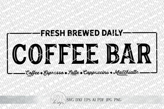 Coffee Bar Kitchen SVG | Cutting File | Vinyl Stencil HTV | Farmhouse Rustic Sign | eps dxf | Cricut SVG | Silhouette dxf | Wall Decor