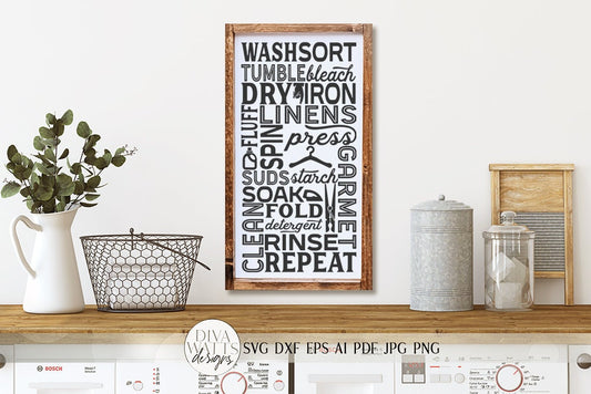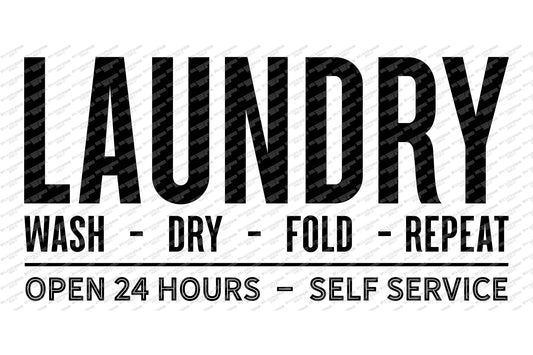 SVG | Laundry | Cutting File | Wash Dry Fold Repeat | Open 24 Hours Self Service Vintage Rustic Farmhouse Room Sign | DXF EPS | Self Servive