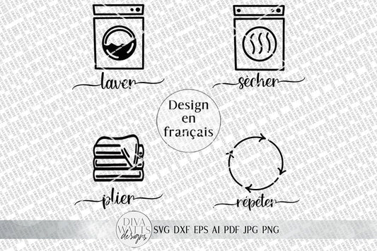 Ensemble SVG de buanderie | Signes de salle de lavage de ferme | Lavage à sec répéter pli | dxf et plus