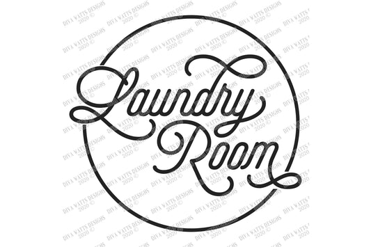 SVG | Laundry Room | Cutting File | Vintage Retro Farmhouse Monoline Script | Vinyl Stencil HTV | dxf eps png | Circle Circular Round Sign