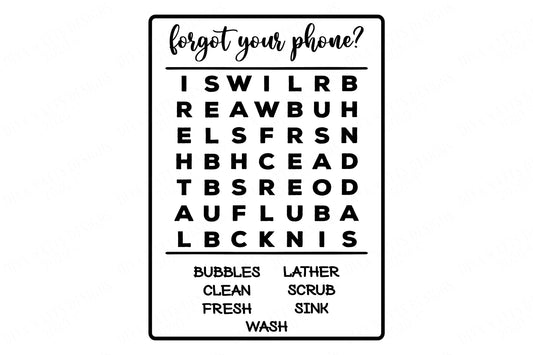 Forgot Your Phone Bathroom Word Search | Version 2 | Cutting Files and Printable | SVG DXF JPG eps | Digital Download