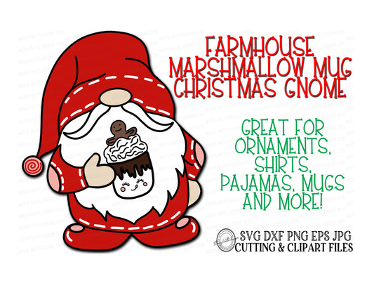 Christmas Gnome | Cutting Files and Printable | Marshmallow Mug Gingerbread Topper | SVG DXF and More!