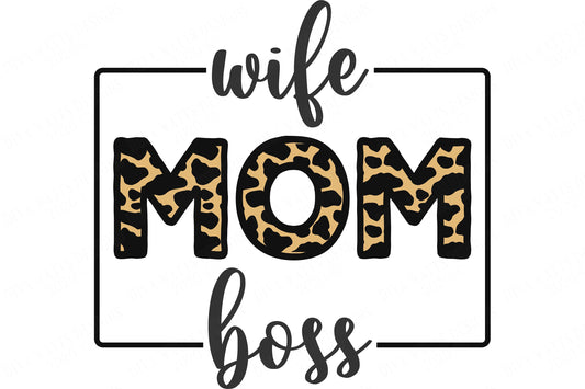 Wife Mom Boss | Leopard Print | Cutting Files | Printables | Sublimination | Shirt | Tote | Sign | SVG DXF PNG and More!