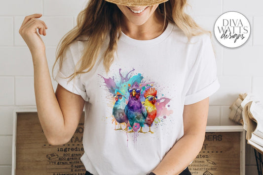 Watercolor Cool Chickens With Sunglasses | Sublimation PNG