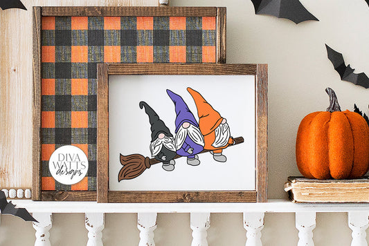 Flying Gnomes on Broomstick | Halloween Cutting Files and Printable | SVG DXF and More! | Witch Gnomes