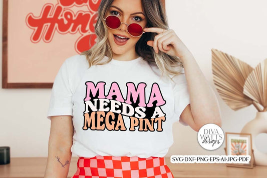 Mama Needs A Mega Pint SVG | Funny Retro Wine Design