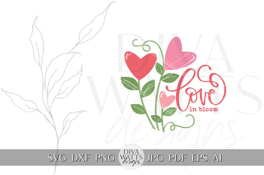 Love in Bloom SVG | Heart Flowers Valentine's Day Design | Cricut & Silhouette Cut File | Valentine's Day Door Hanger svg