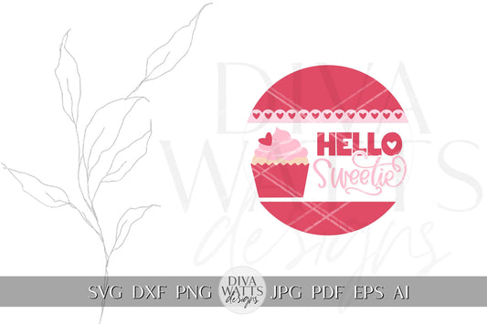 Hello Sweetie SVG | Valentine Cupcake Door Hanger Design | Cricut & Silhouette Cut File | Valentine's Day Door Hanger svg