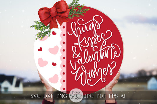 Hugs Kisses and Valentine Wishes SVG | Valentine’s Day Digital Design for Cricut & Silhouette | Valentine's Day Door Hanger svg