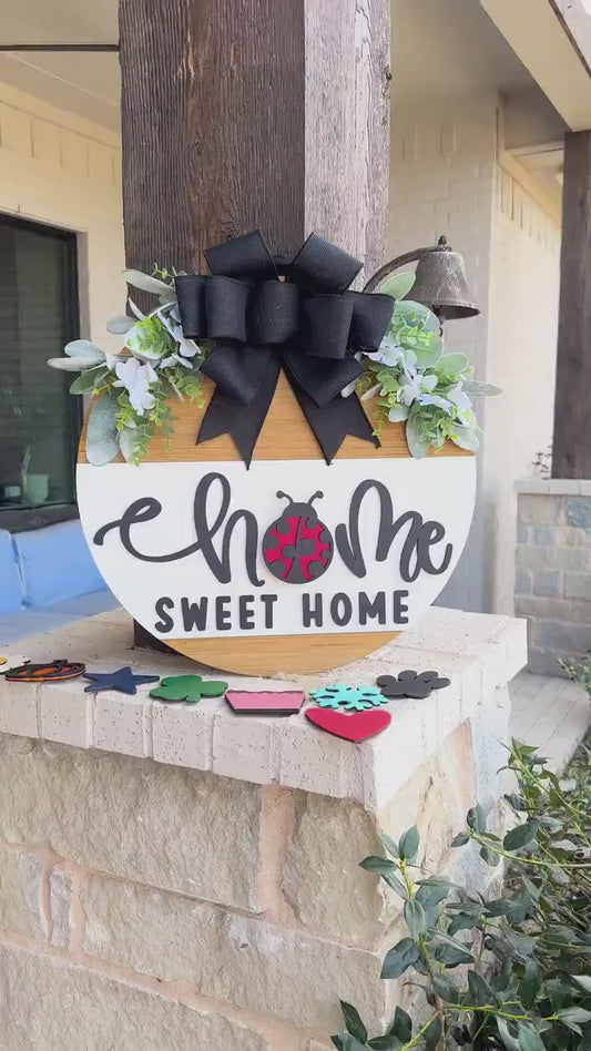 Interchangeable Door Hanger SVG | Home Sweet Home Sign Digital Cut File | Round Wood Sign for Glowforge xTool Laser | DIY SVG File
