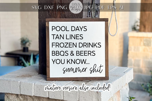 Summer Stuff Sign SVG Laser File | Pool Days Tan Lines Beers BBQs Engrave Sign | Funny Summer Sign SVG for Laser Engraving and Cutting