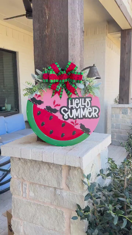 Hello Summer Watermelon SVG Laser Cut File | Summer Door Hanger SVG | 3D Layered Laser File | Glowforge Xtool Omtech Cut File Round Sign svg