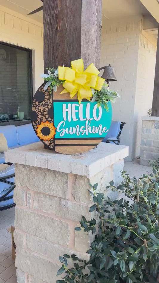 Hello Sunshine Sunflower SVG Laser Cut File | 3D Layered Door Hanger SVG | Farmhouse Porch Sign | Glowforge Xtool Laser File Round Sign svg