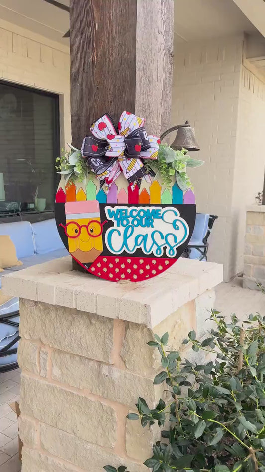 Teacher Door Hanger SVG, Welcome to Our Class Sign Laser Cut File, Back to School Classroom Decor, Pencil Round Sign, Glowforge xTool File