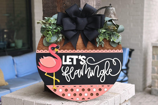 Let’s Flamingle Flamingo Door Hanger SVG, Layered Laser Cut File for Glowforge Xtool, Summer Tropical Sign SVG, 3D Round Door Sign