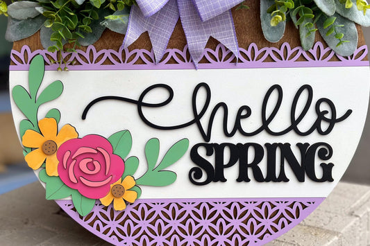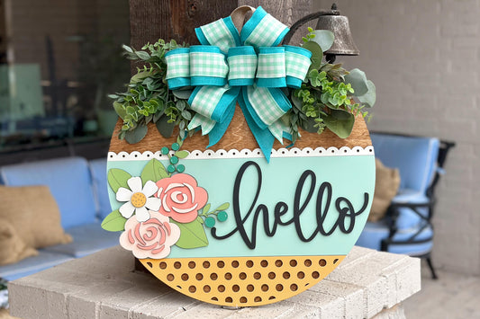 Floral Hello Door Hanger SVG Laser Cut File, Round Welcome Sign, Spring Floral Design, Glowforge and Xtool Compatible, DIY Laser File