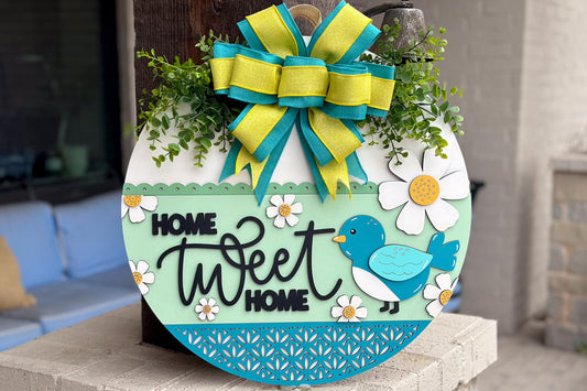 Home Tweet Home Door Hanger SVG, Layered Laser Cut File for Glowforge Xtool, Spring Bird Welcome Sign SVG, 3D Round Door Sign