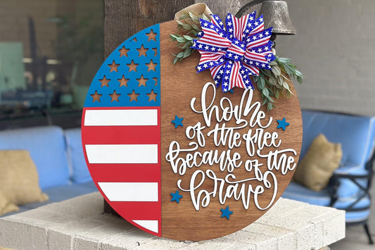 Home of the Free Because of the Brave Door Hanger SVG, Layered Laser Cut File for Glowforge Xtool, Patriotic 4th of July Sign SVG
