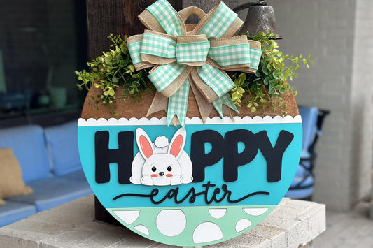 Happy Easter Bunny Door Hanger SVG, Laser Cut File for Glowforge Xtool, Layered Easter Sign SVG, Round Door Sign Digital File