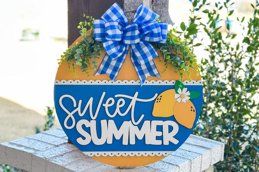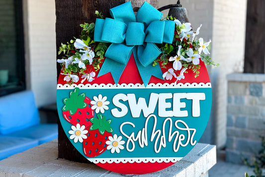 Sweet Summer Door Hanger SVG, Round Laser Cut File for Glowforge, Farmhouse Welcome Sign, Customizable Summer Design