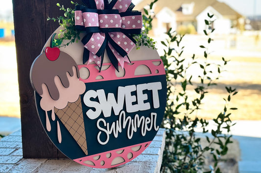 Sweet Summer Ice Cream Door Hanger SVG, Round Laser Cut File for Glowforge, Customizable Summer Sign, Farmhouse Wall Decor