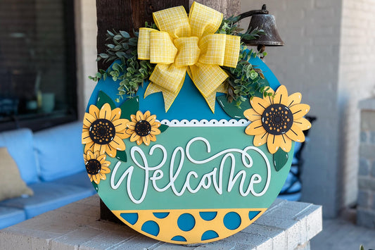 Welcome Door Hanger SVG, Sunflower Laser Cut File, Round Door Sign Design, Glowforge SVG, Xtool, Farmhouse Welcome Decor