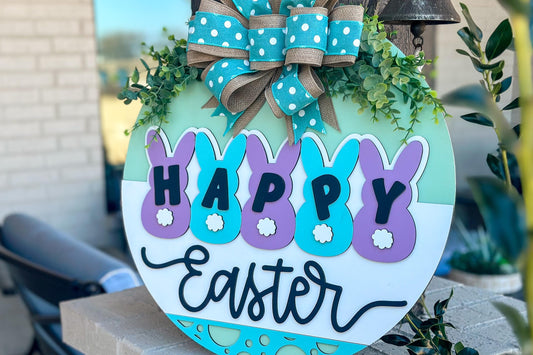Happy Easter Bunny Door Hanger SVG, Round Laser Cut File for Glowforge, Customizable Easter Sign, Farmhouse Spring Decor