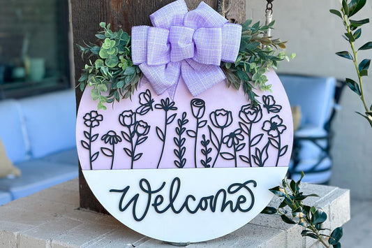 Welcome Door Hanger SVG, Floral Laser Cut File, Round Sign Design, Glowforge SVG, Xtool, Farmhouse Welcome Decor, Floral Door Hanger, Daisy