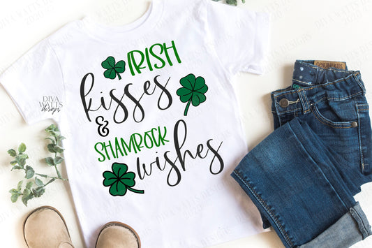 SVG | Irish Kisses & Shamrock Wishes | Cutting File | St Patrick's Patty's Day | 4 Leaf Clover | Vinyl Stencil HTV | Shirt Sign | png eps