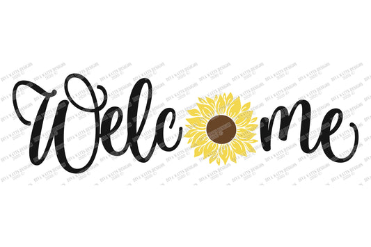 SVG | Welcome Sunflower | Cutting File | DXF EPS | Vinyl Stencil htv | Front Porch Entry Sign | Spring Summer | Cricut Silhouette | Script