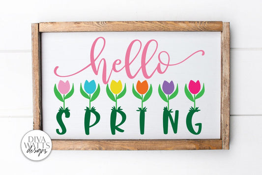 Hello Spring With Flowers SVG | Farmhouse Sign | dxf and more