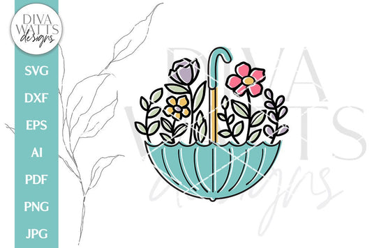 Spring Umbrella With Flowers SVG