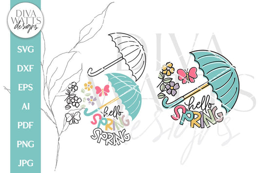Hello Spring SVG | Butterflies and Umbrella Spring Time Design