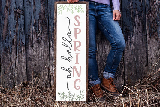 Oh Hello Spring SVG | Vertical Porch Sign | Farmhouse Style Design | dxf and more