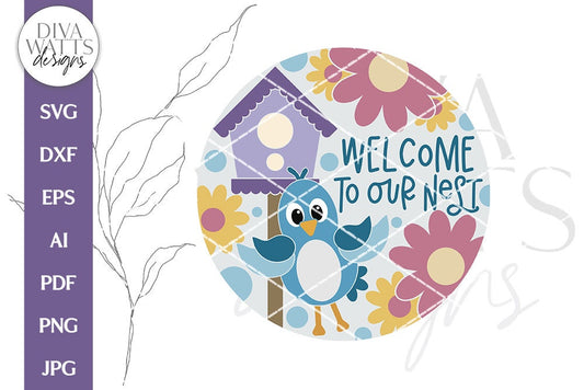 Welcome To Our Nest SVG | Bird and Birdhouse Door Hanger Design
