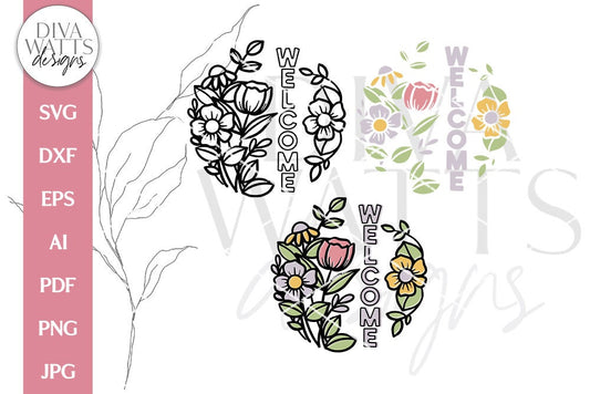 Welcome SVG | Spring Flowers Design For Door Hanger