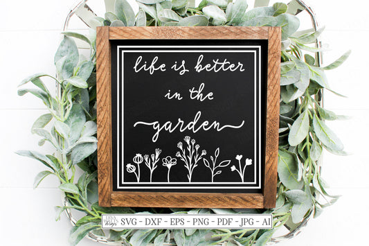 SVG | Life Is Better In The Garden | Cutting File | Flowers | Gardening | Farmhouse Rustic Sign | Vinyl Stencil HTV | dxf eps png | script