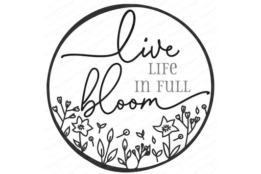 SVG | Live Life In Full Bloom | Cutting File | Flowers Garden Flower | Round Circle Wreath Sign | Farmhouse Rustic | dxf ai | Spring Summer
