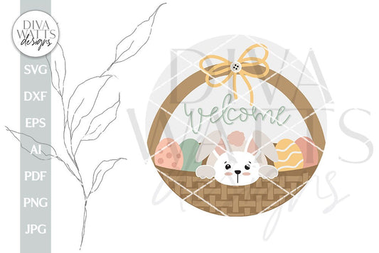 Welcome SVG Easter Bunny Door Hanger svg Easter Door Hanger svg Easter svg Bunny SVG Cute Bunny svg Cute Easter Basket Bunny Welcome svg