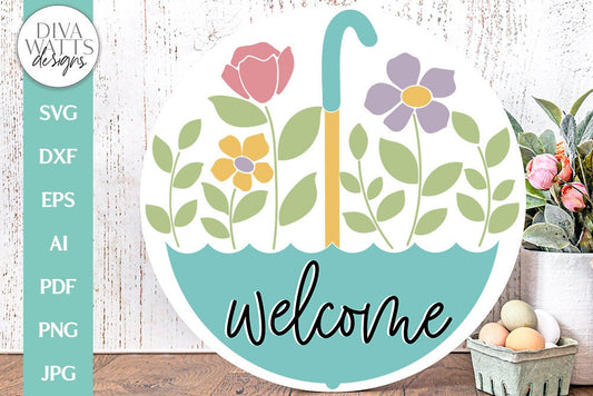 Welcome SVG | Spring Flowers Design For Door Hanger
