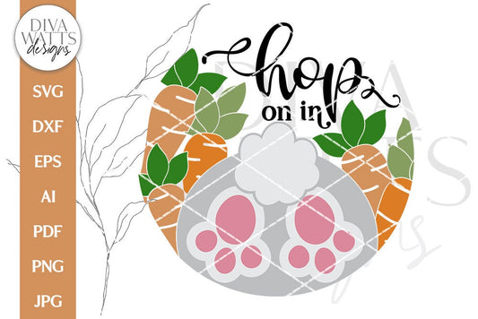 Hop On In SVG | Easter Bunny Butt & Carrots Door Hanger Design
