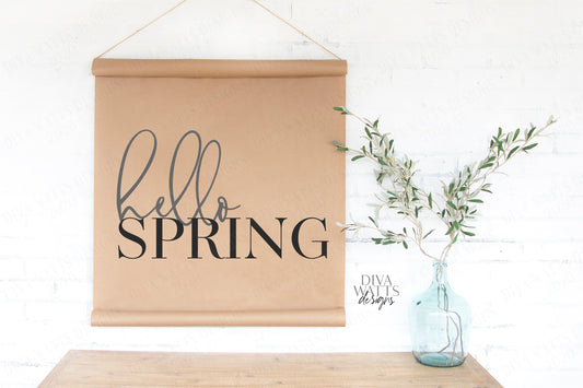 SVG | Hello Spring | Cutting File | Farmhouse Handwriting Script Sign | Vinyl Stencil HTV | Rustic | Shirt Tea Towel Mat | dxf