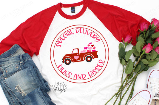 SVG | Valentine's Day Truck | Cutting File | Special Delivery Hugs and Kisses | Hearts | Love | Sign Shirt | Vinyl Stencil HTV | Little Red