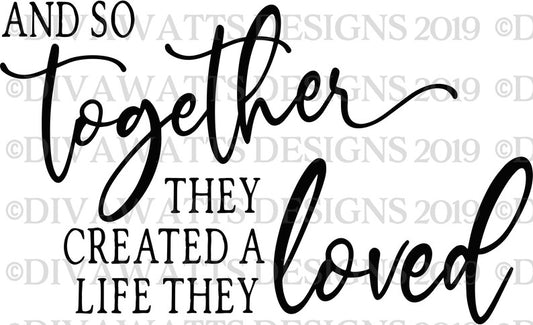 SVG And So Together They Created A Life They Loved | Cutting File | Wedding Anniversary Engagement | Farmhouse Sign PDF JPG Vinyl Stencil