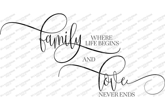 SVG | Family Where Life Begins and Love Never Ends | Cutting File | Vinyl Stencil HTV | Farmhouse Script Sign | png eps jpg pdf ai | Rustic