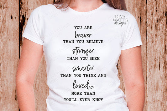 SVG | Braver Stronger Smarter Loved | Cutting File | You Are Braver Than You Think, Stronger Than You Seem, Loved More Than You Know | PNG